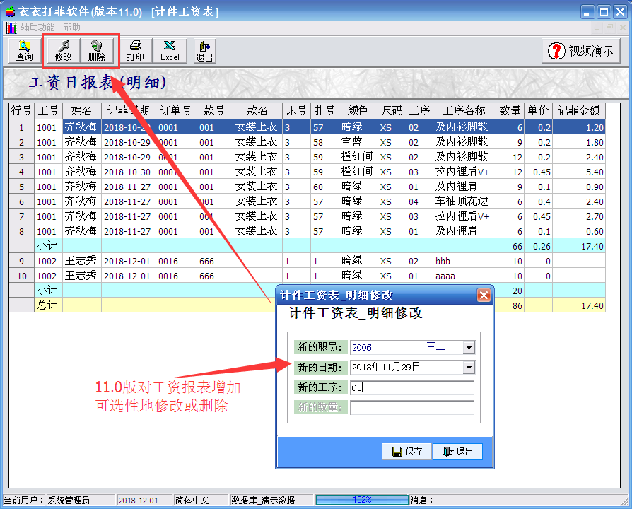 工价设置:设置制单每道工序的价格,[按件或按打]直接填上,可以设置工价上浮百分比或[返工工价=工价*返工比例]